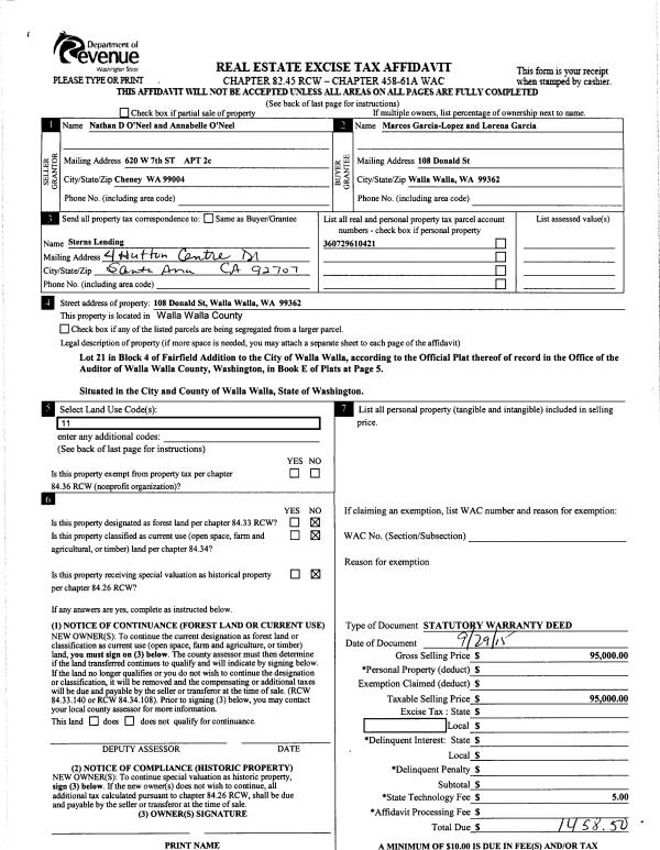 | 2 | 10/05/2015 | SWD | STATUTORY WARRANTY DEED | O'NEEL NATHAN D & ANNABELLE | GARCIA-LOPEZ MARCOS & LORENA | | | $95,000.00 | 128946 | 2015-08763 |
