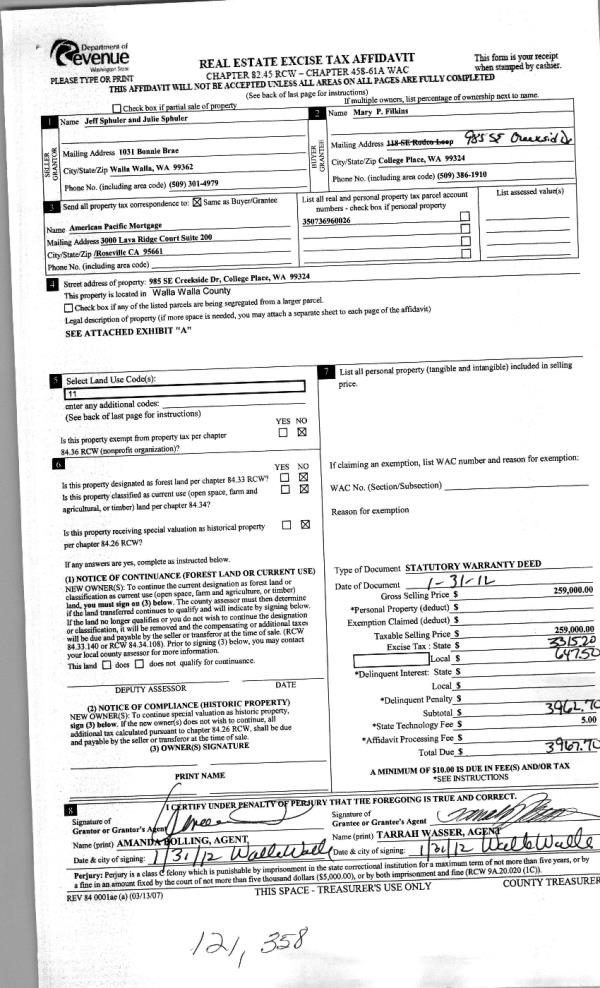 | 6 | 02/02/2012 | WARRANTY D | WARRANTY DEED | SPHULER, JEFF & JULIE | FILKINS, MARY P | | | $259,000.00 | 121358 | 2012-00953 |