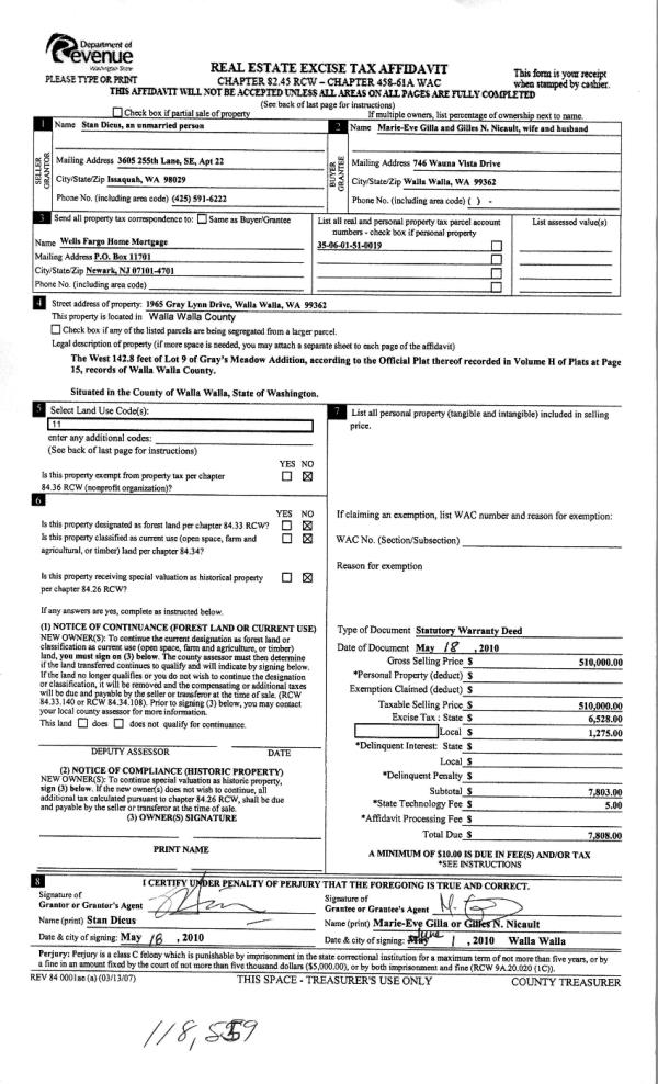 | 2 | 06/01/2010 | WARRANTY D | WARRANTY DEED | DICUS, STAN | NICAULT, GILLES | | | $510,000.00 | 118559 | 2010-04238 |