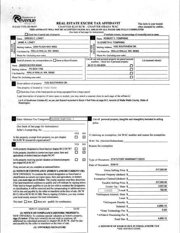 | 2 | 05/25/2010 | WARRANTY D | WARRANTY DEED | LONEY, GREGG C & JAMIE A | TOMPKINS, ROBERT V & ELIZABETH | | | $317,000.00 | 118518 | 2010-04059 |