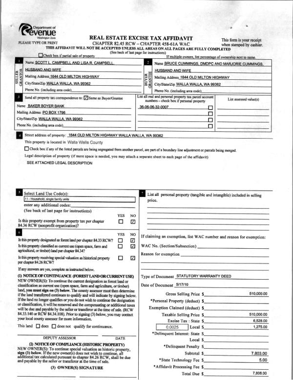 | 7 | 01/02/2009 | WARRANTY D | WARRANTY DEED | CAMPBELL, LISA | CAMPBELL, SCOTT L | | | | 0 | CC #07-3-00301-5 |