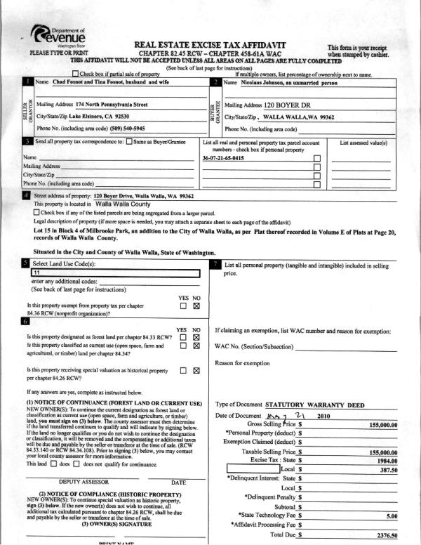| 5 | 05/25/2010 | WARRANTY D | WARRANTY DEED | FOSNOT, CHAD & TINA | JOHNSON, NICOLAUS & RACHEL D | | | $155,000.00 | 118521 | 2010-04070 |