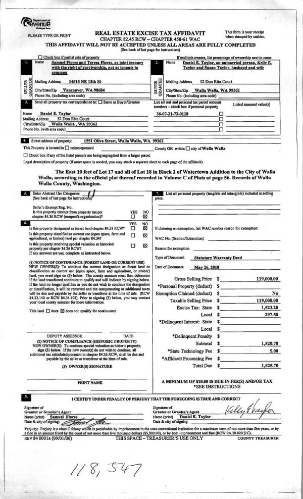 | 4 | 12/17/2010 | WARRANTY D | WARRANTY DEED | FLORES, SAMUEL & TERESA | TAYLOR, DANIEL B | | | | 119472 | 2010-10446 |