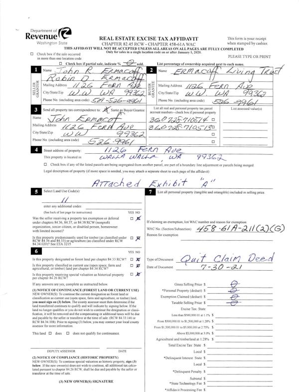 | 2 | 03/21/2021 | QCD | QUIT CLAIM DEED | | ERMACOFF LIVING TRUST | | 2 PARCELS | $0.00 | 141147 | 2021-03226 |