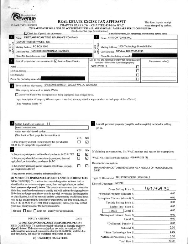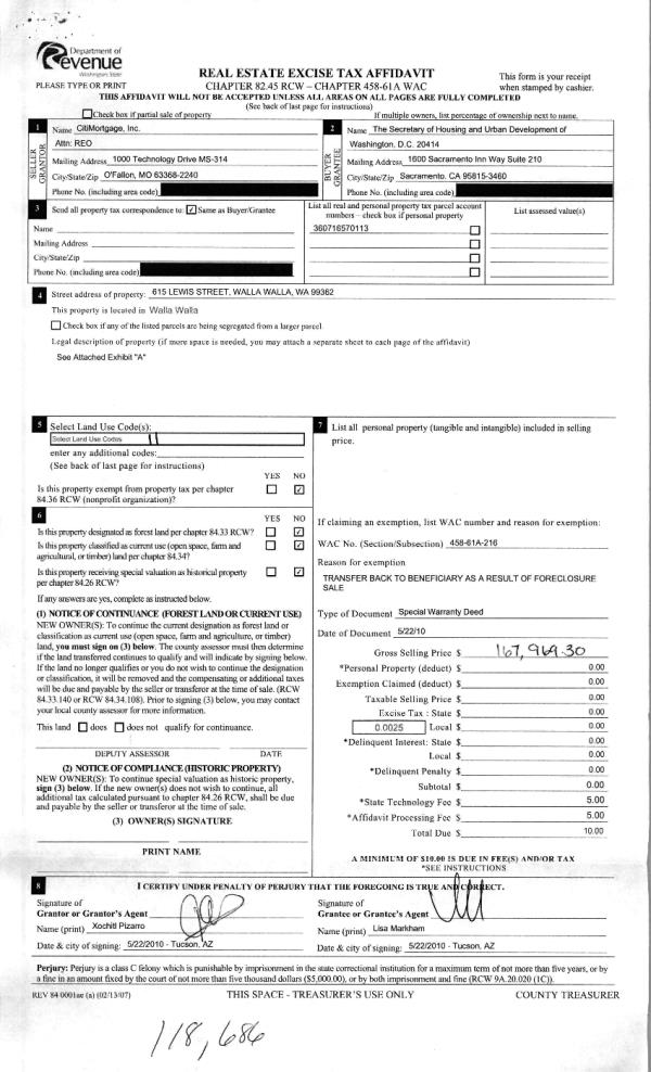 | 5 | 06/29/2010 | WARRANTY D | WARRANTY DEED | CITIMORTGAGE INC | SECRETARY OF HOUSING & URBAN D | | | $167,969.00 | 118686 | 2010-05054 |
