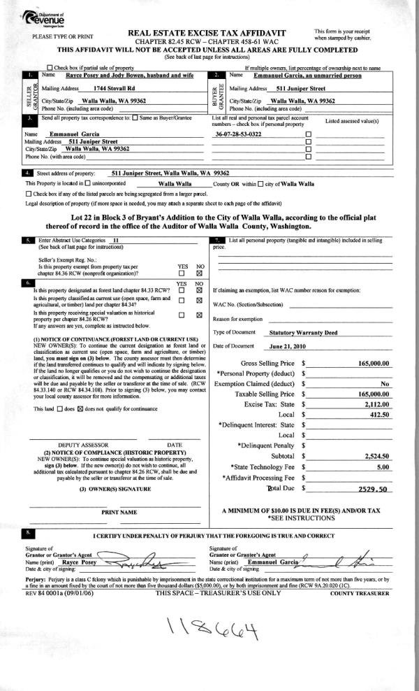 | 3 | 06/25/2010 | WARRANTY D | WARRANTY DEED | BOWEN, JODY | GARCIA, EMMANUEL | | | $165,000.00 | 118664 | 2010-04945 |