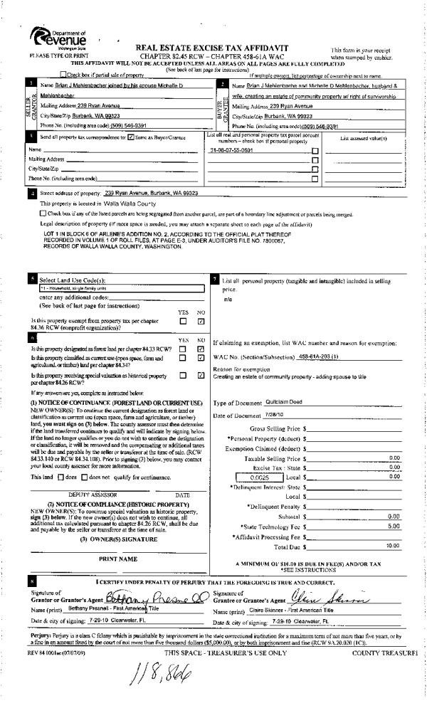 | 8 | 08/13/2010 | QCD | QUIT CLAIM DEED | MEHLENBACHER, BRIAN J | MEHLENBACHER, BRIAN J & MICHEL | | | | 118866 | 2010-06258 |