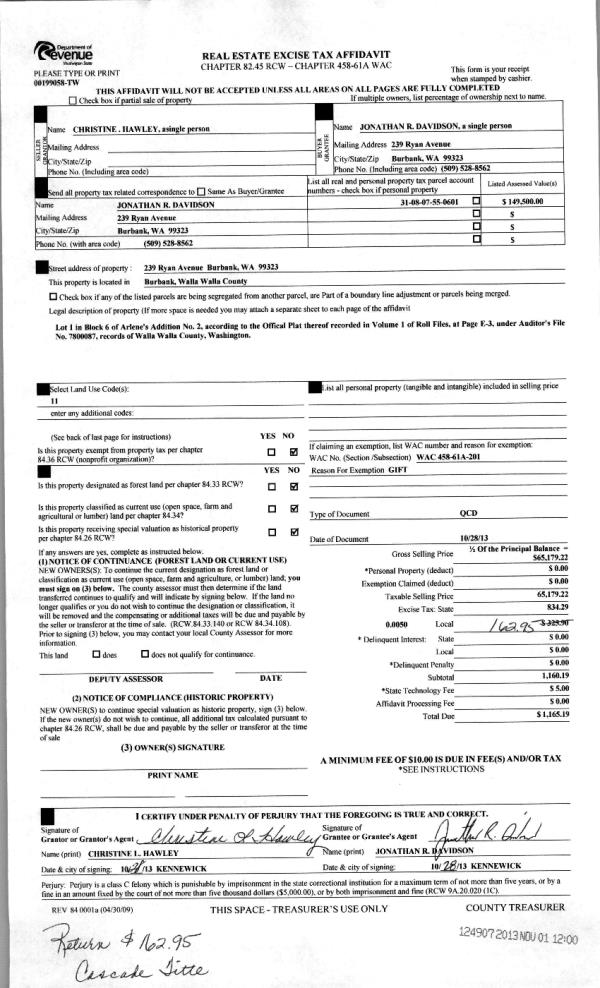 | 6 | 11/01/2013 | QCD | QUIT CLAIM DEED | DAVIDSON, JONATHAN R | DAVIDSON, JONATHAN R | | | $65,179.00 | 124907 | 2013-10909 |
