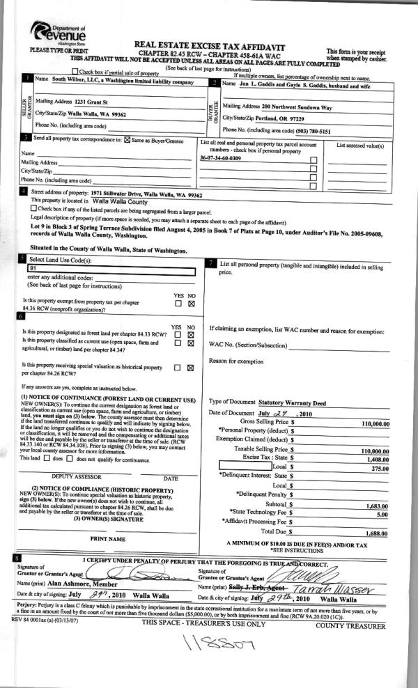 | 3 | 07/29/2010 | WARRANTY D | WARRANTY DEED | SOUTH WILBUR LLC | GADDIS, JON L & GAYLE S | | | $110,000.00 | 118807 | 2010-05875 |