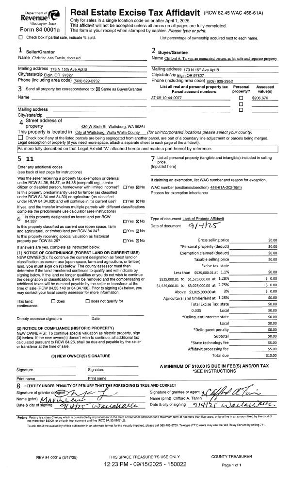 | Mailing Address: | 26 NE TREMONT DR COLLEGE PLACE, WA 99324 | % Ownership: | 100.0000000000% |