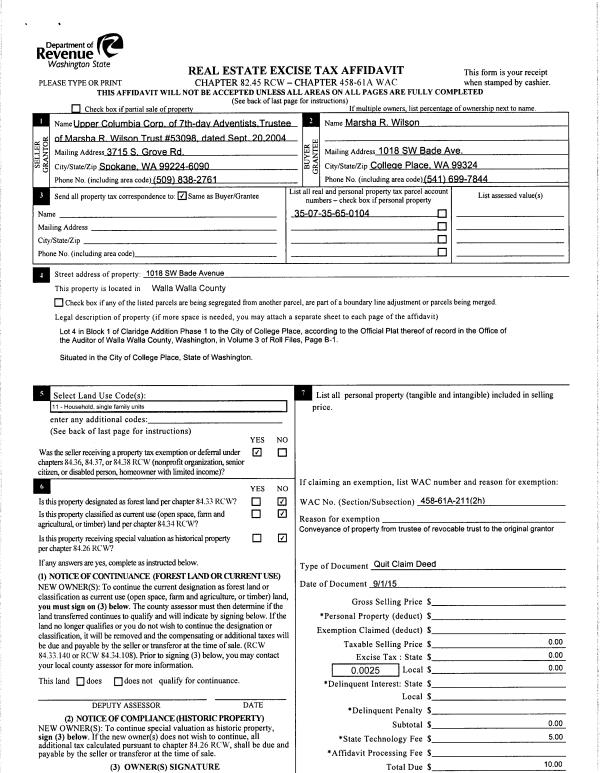 | 5 | 09/03/2015 | QCD | QUIT CLAIM DEED | WILSON MARSHA R LIFE ESTATE | WILSON MARSHA R | | | $0.00 | 128846 | 2015-08192 |