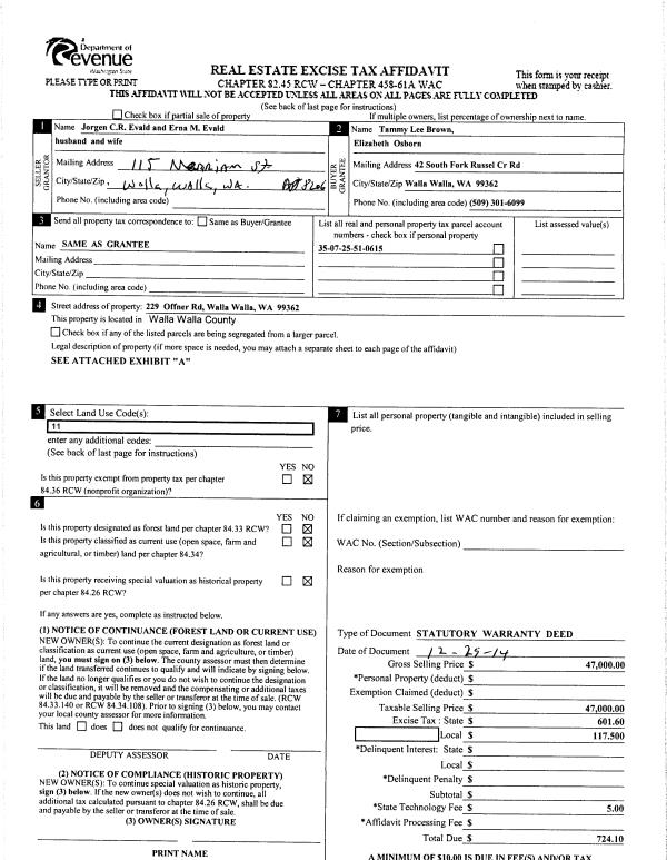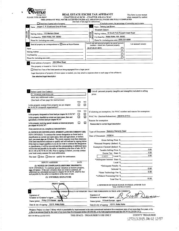 | 4 | 12/29/2014 | SWD | STATUTORY WARRANTY DEED | EVALD JORGEN C R | BROWN TAMMY LEE | | | $47,000.00 | 127192 | 2014-09455 |