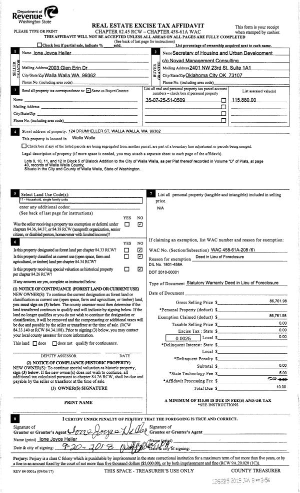 | 3 | 01/08/2019 | DFL | DEED IN LIEU OF FORECLOSURE | HELLER IONE | SECRETARY OF HOUSING AND URBAN DEVELOPMENT | | | $86,761.00 | 136225 | 2019-00180 |