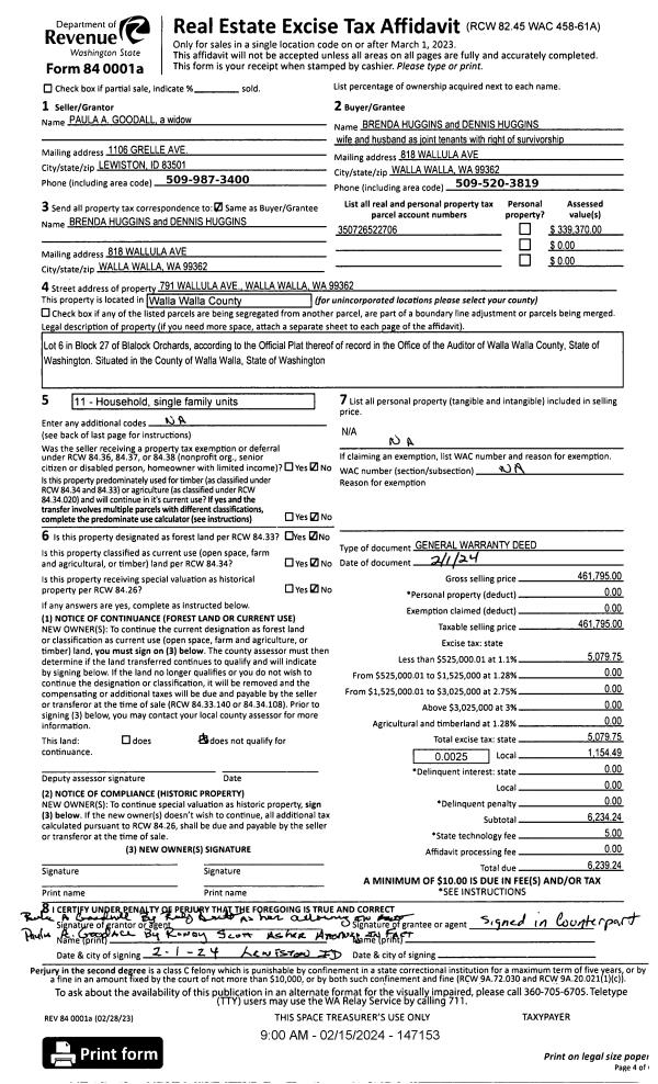 | 1 | 02/15/2024 | DEED | DEED | GOODALL PAULA ANNE | HUGGINS BRENDA & DENNIS | | | $461,795.00 | 147153 | 2024-00818 |