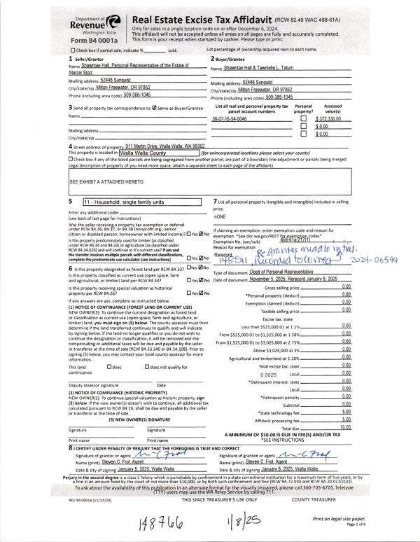 | 1 | 01/08/2025 | DPR | DEED OF PERSONAL REPRESENTATIVE | HALL SHAWNTAE & TAWNIELLE D TATUM | HALL SHAWNTAE & TAWNIELLE L TATUM | | | | 148766 | 2025-00108 |