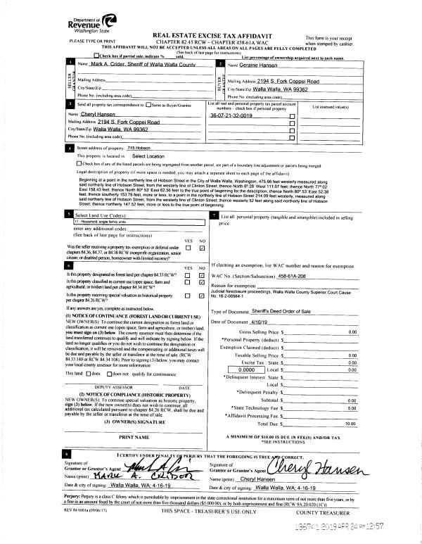 | 3 | 04/10/2019 | SHERIFFS D | SHERIFFS DEED | NEWBY MARY LOIS | HANSEN GERAINE | | | $0.00 | 136741 | 2019-02605 |
