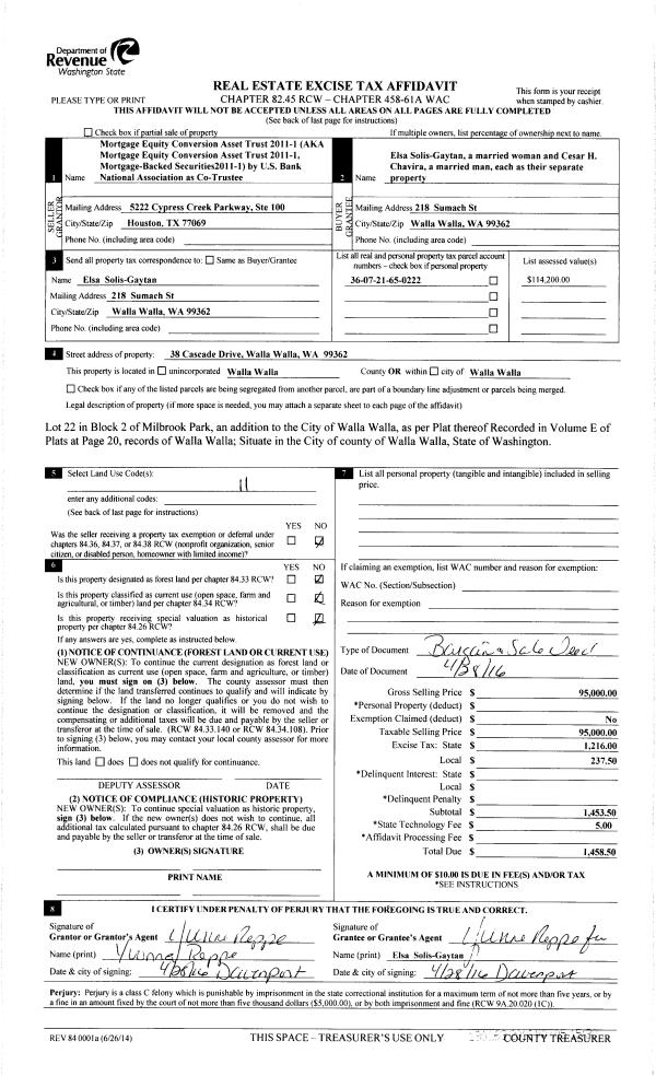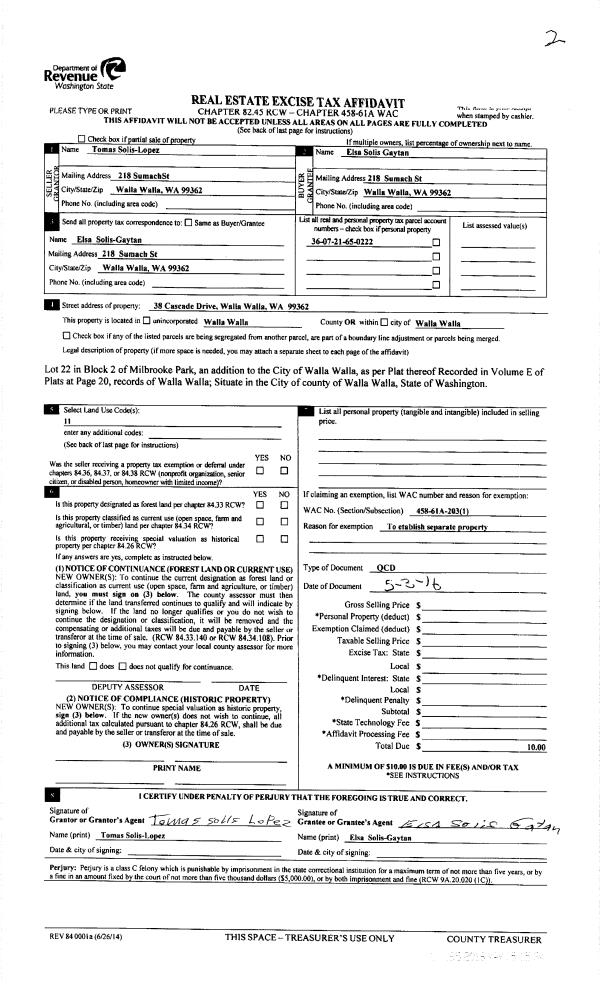 | Mailing Address: | ELSA SOLIS-GAYTAN 218 SUMACH ST WALLA WALLA, WA 99362 | % Ownership: | 100.0000000000% |