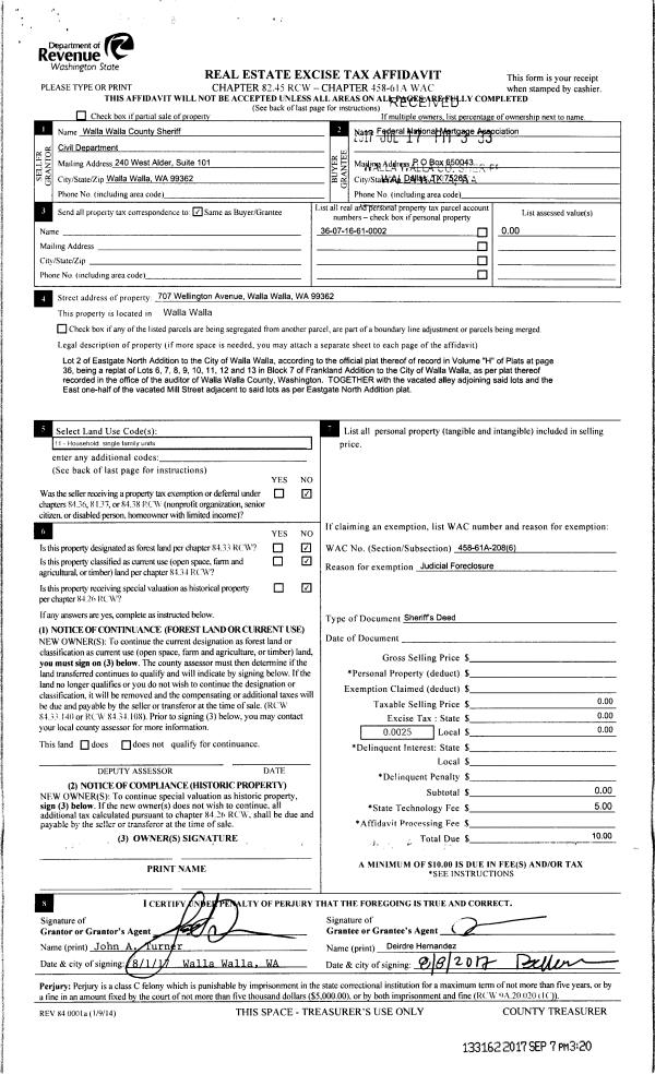 | 3 | 08/08/2017 | AFFIDAVIT | AFFIDAVIT | HORNER GERALD RAY & BERTHA MAY | FEDERAL NATIONAL MORTGAGE ASSOCIATION | | | $0.00 | 133162 | 2017-07020 |