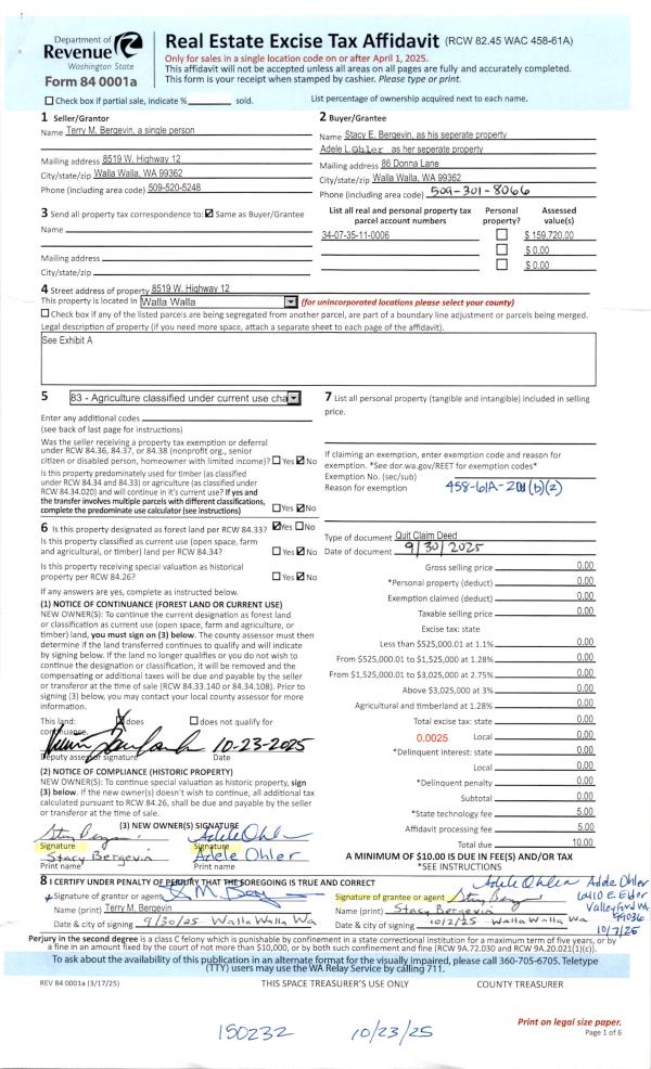 | Mailing Address: | 8519 OLD HWY 12 WALLA WALLA, WA 99362 | % Ownership: | 100.0000000000% |