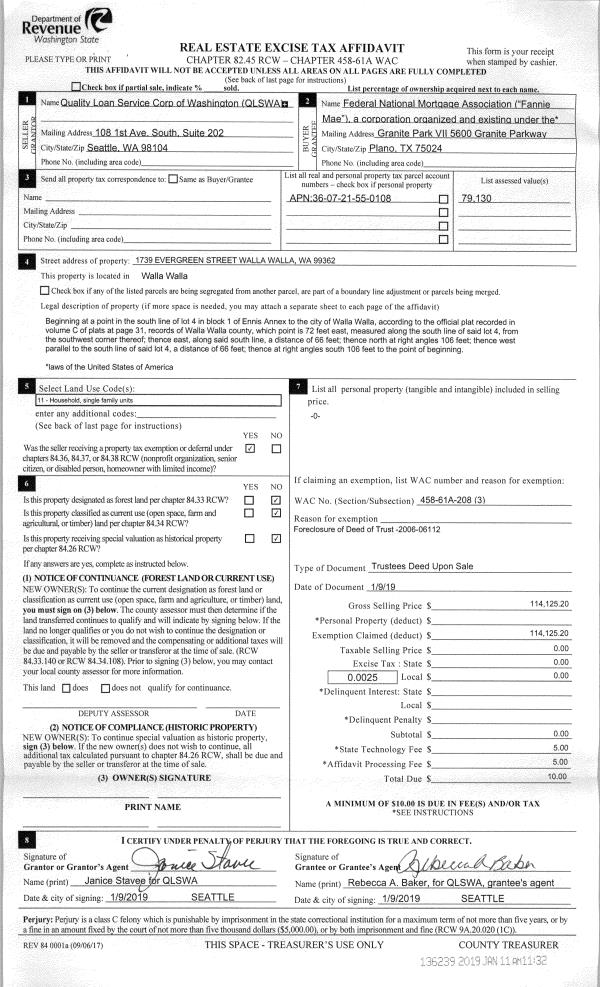 | 4 | 01/11/2019 | TRUSTEES D | TRUSTEE'S DEED | HERNANDEZ SANDRA | FEDERAL NATIONAL MORTGAGE ASSOCIATION | | | $114,125.00 | 136239 | 2019-00232 |