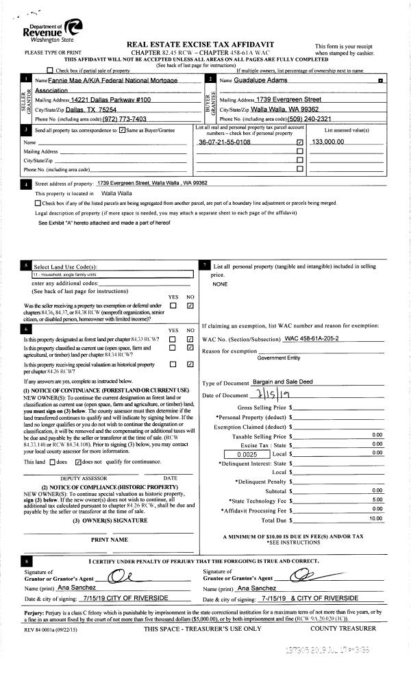 | 3 | 07/17/2019 | BARGAIN & | BARGAIN & SALE DEED | FEDERAL NATIONAL MORTGAGE ASSOCIATION | ADAMS GUADALUPE | | | $133,000.00 | 137305 | 2019-05202 |