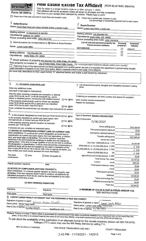 | 2 | 11/19/2021 | SWD | STATUTORY WARRANTY DEED | NASTRI NICOLE HOPE | MILLER LYMAN LANTZ | | | $337,000.00 | 142915 | 2021-13802 |
