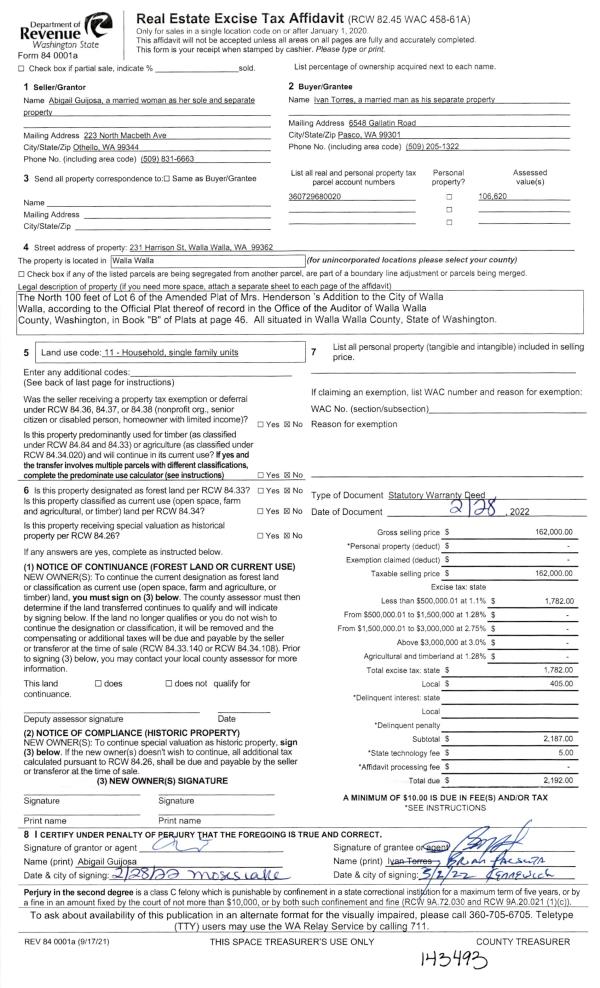 | 3 | 03/02/2022 | SWD | STATUTORY WARRANTY DEED | GUIJOSA ABIGAIL | TORRES IVAN | | | $162,000.00 | 143493 | 2002-01842 |