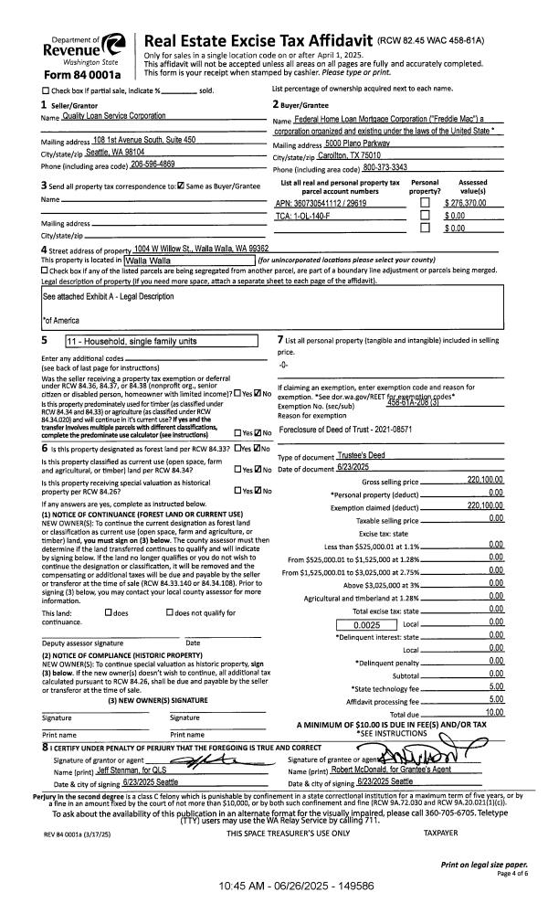 | 1 | 06/26/2025 | TRUSTEES D | TRUSTEE'S DEED | FLERCHINGER LISA M | FEDERAL HOME LOAN MORTGAGE CORPORATION | | | $0.00 | 149586 | 2025-03615 |