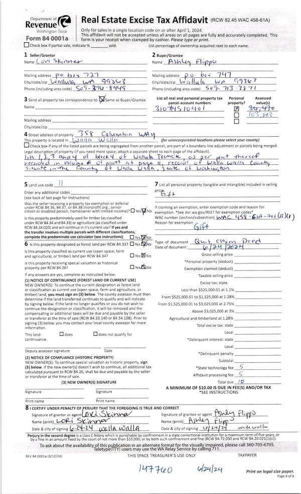 | 3 | 06/24/2024 | REET | REAL ESTATE AFFIDAVIT | SKINNER LORI D | FLIPPO BRYCE & ASHLEY | | | | 147760 | |