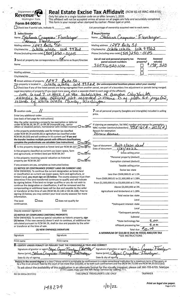 | 1 | 01/21/2022 | QCD | QUIT CLAIM DEED | CRUMPACKER-FLERCHINGER STEFANIE | CRUMPACKER STEFANIE FLERCHINGER | | | $0.00 | 143279 | 2022-00638 |