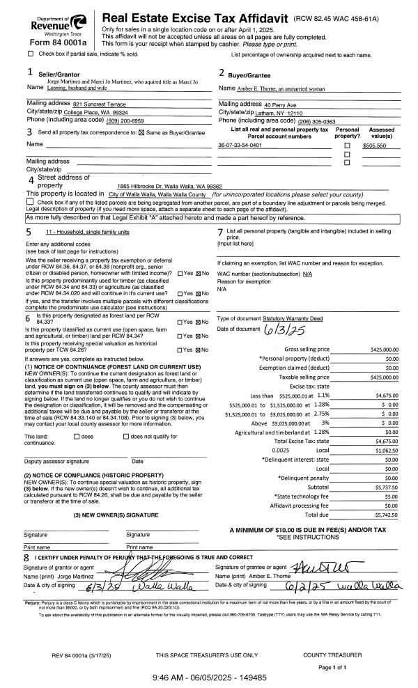 | 1 | 06/05/2025 | SWD | STATUTORY WARRANTY DEED | MARTINEZ JORGE & MARCI JO LANNING | THORNE AMBER E | | | $425,000.00 | 149485 | 2025-03148 |