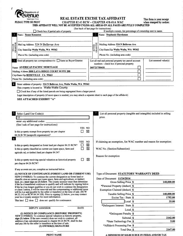 | 4 | 11/25/2014 | SWD | STATUTORY WARRANTY DEED | KENASTON SUSAN | HARSHMAN STEPHANIE | | | $140,000.00 | 127014 | 2014-08587 |