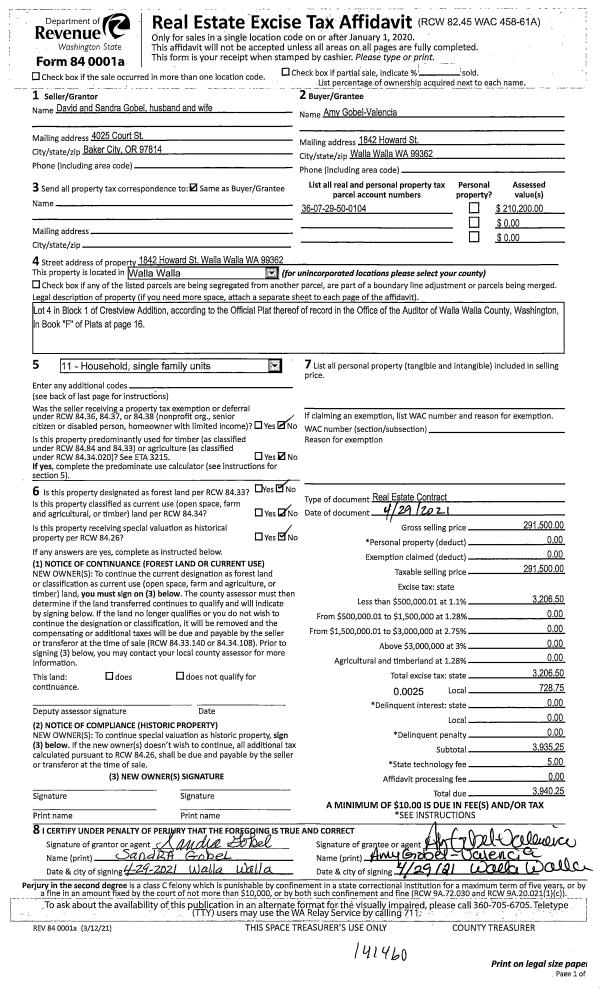 | 2 | 04/30/2021 | REAL ESTAT | REAL ESTATE CONTRACT | GOBEL DAVID & SANDRA | GOBEL-VALENCIA AMY | | | $291,500.00 | 141460 | 2021-05102 |