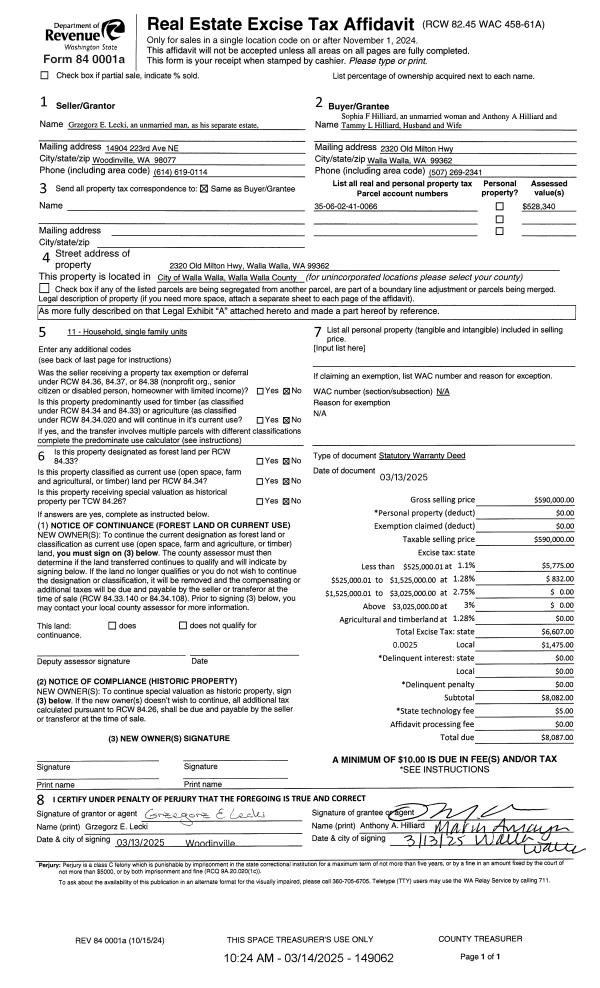 | Mailing Address: | 2320 OLD MILTON HWY WALLA WALLA, WA 99362 | % Ownership: | 100.0000000000% |