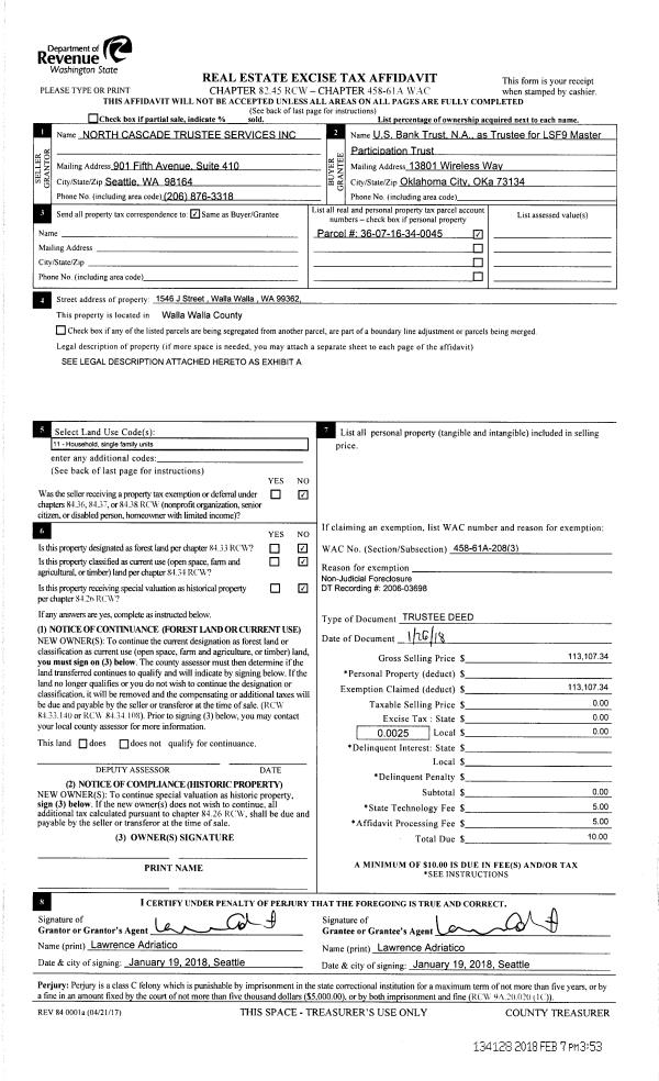 | 6 | 02/07/2018 | TRUSTEES D | TRUSTEE'S DEED | PAUL STEVE R | US BANK TRUST NA | | | $113,107.00 | 134128 | 2018-01091 |