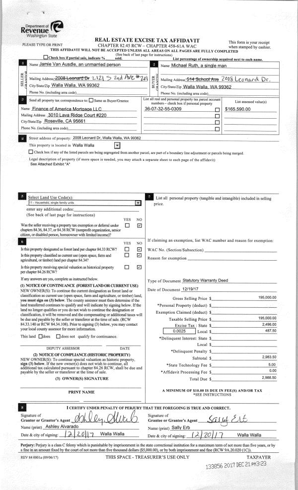 | 1 | 12/21/2017 | SWD | STATUTORY WARRANTY DEED | VAN AUSDLE JAMIE | RUTH MICHAEL | | | $195,000.00 | 133856 | 2017-10304 |