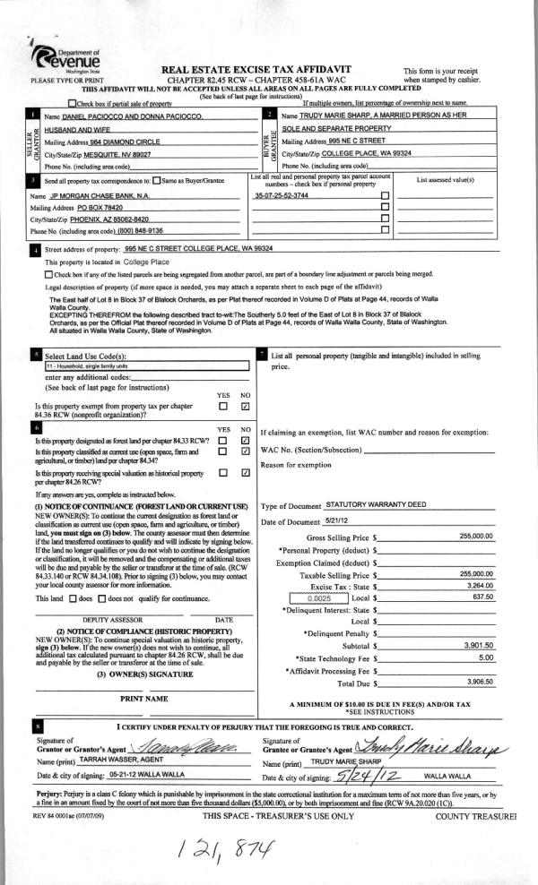 | 3 | 05/25/2012 | WARRANTY D | WARRANTY DEED | PACIOCCO, DANIEL & DONNA | SHARP, TRUDY MARIE | | | $255,000.00 | 121874 | 2012-04315 |