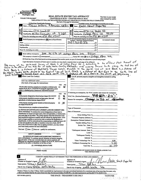 | Mailing Address: | 545 STONE ST WALLA WALLA, WA 99362 | % Ownership: | 100.0000000000% |
