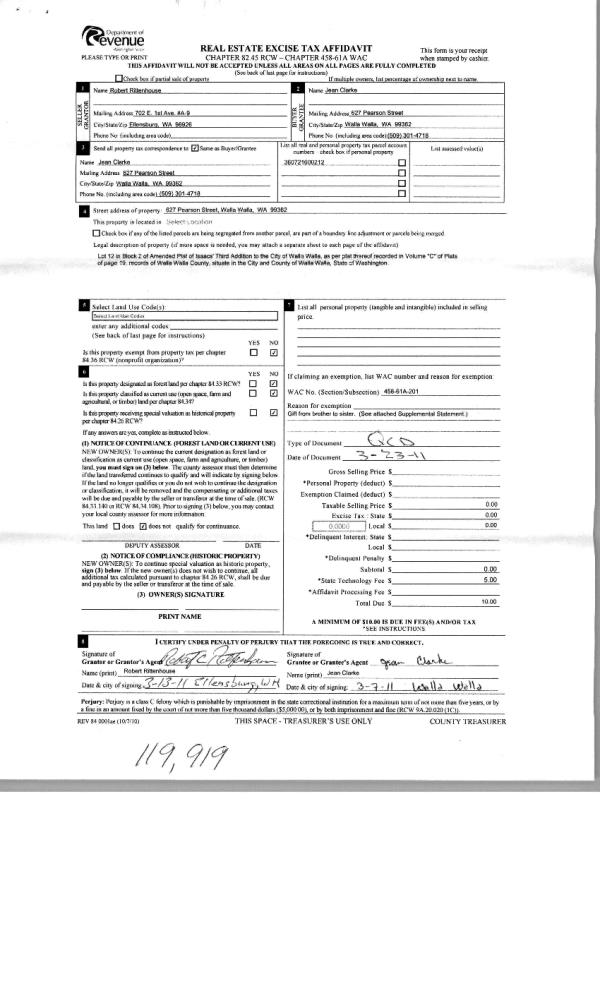 | Mailing Address: | 627 PEARSON ST WALLA WALLA, WA 99362 | % Ownership: | 100.0000000000% |