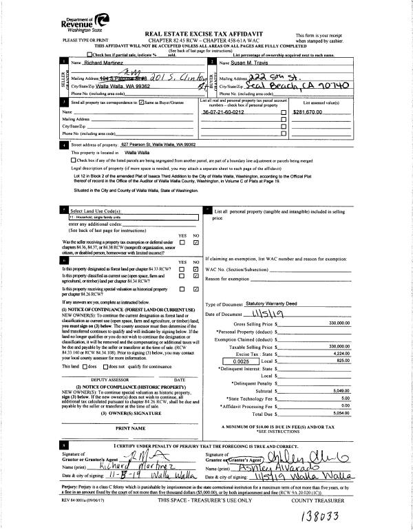 | 2 | 11/07/2019 | SWD | STATUTORY WARRANTY DEED | MARTINEZ RICHARD | TRAVIS SUSAN M | | | $330,000.00 | 138033 | 2019-09131 |