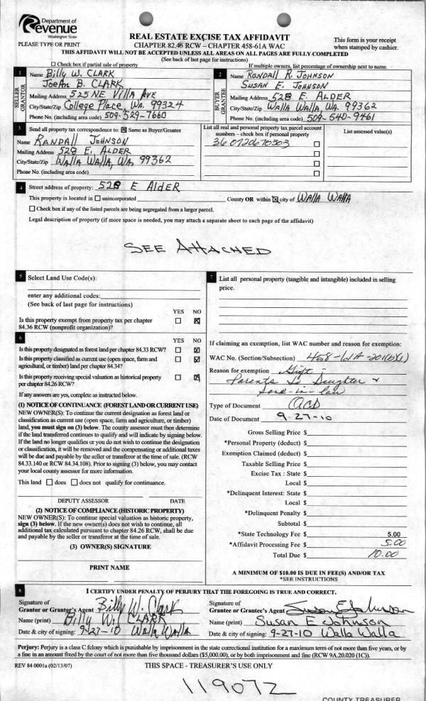 | 3 | 09/27/2010 | QCD | QUIT CLAIM DEED | CLARK, BILLY W & JOE AN B | JOHNSON, RANDALL R & SUSAN E | | | | 119072 | 2010-07663 |