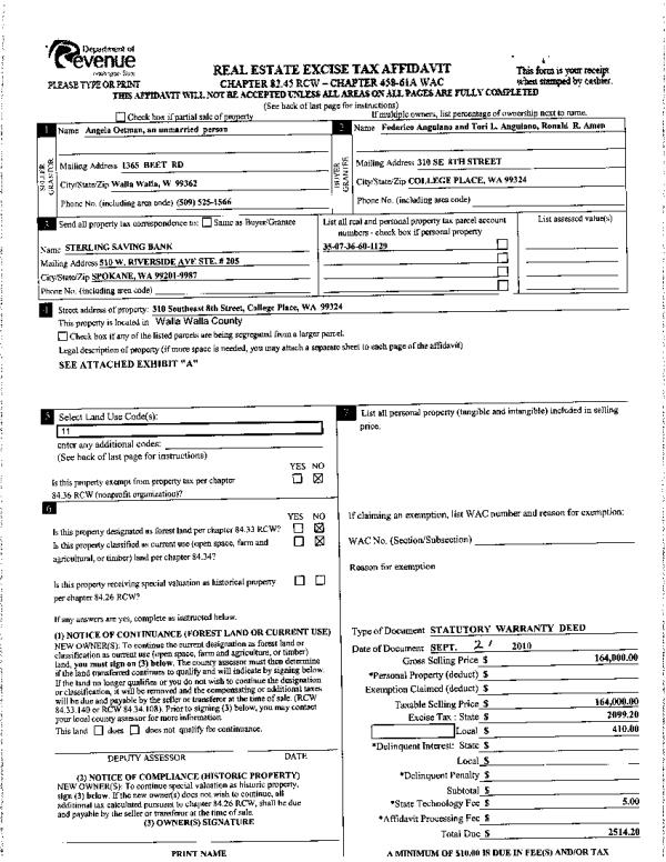 | 2 | 09/22/2010 | WARRANTY D | WARRANTY DEED | OETMAN, ANGELA | ANGUIANO, FEDERICO & TORI L | | | $164,000.00 | 119046 | 2010-07506 |