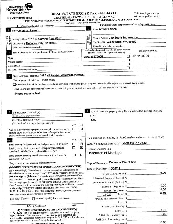 | 3 | 10/24/2014 | QCD | QUIT CLAIM DEED | LARSEN JONATHAN & AMBRR | LARSEN AMBER | | | $0.00 | 127401 | 2015-01244 |