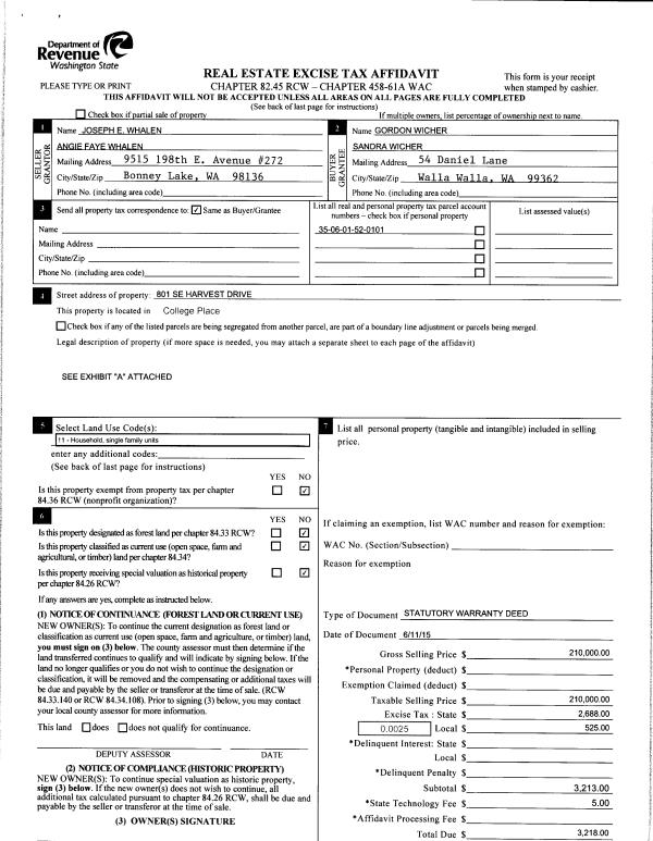 | 2 | 06/15/2015 | SWD | STATUTORY WARRANTY DEED | WHALEN JOSEPH E & ANGIE FAYE | WICHER GORDON & SANDRA | | | $210,000.00 | 128167 | 2015-05000 |