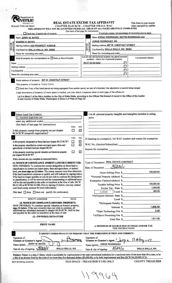 | 4 | 04/01/2011 | WARRANTY D | WARRANTY DEED | BATES, JERRY M & SANDRA R | RODRIGUEZ, JORGE & MAYRA | | | $105,000.00 | 119964 | 2011-02759 |