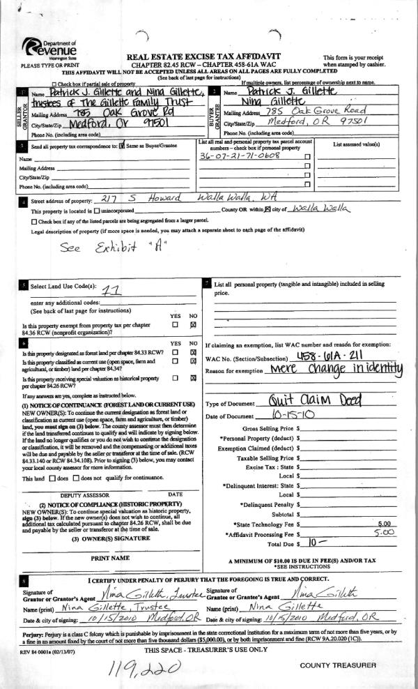 | 2 | 10/20/2010 | WARRANTY D | WARRANTY DEED | BAKER KATHLEEN L | SCHREINDL LIVING TRUST | | | $164,300.00 | 119221 | 2010-08477 |