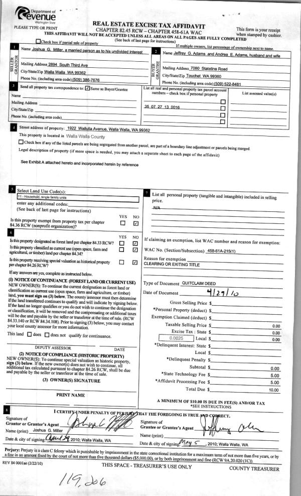 | 7 | 04/09/2010 | WARRANTY D | WARRANTY DEED | HEIN, JOHN W | HEIN, JOHN | | | | 0 | CC #09-3-00325-9 |