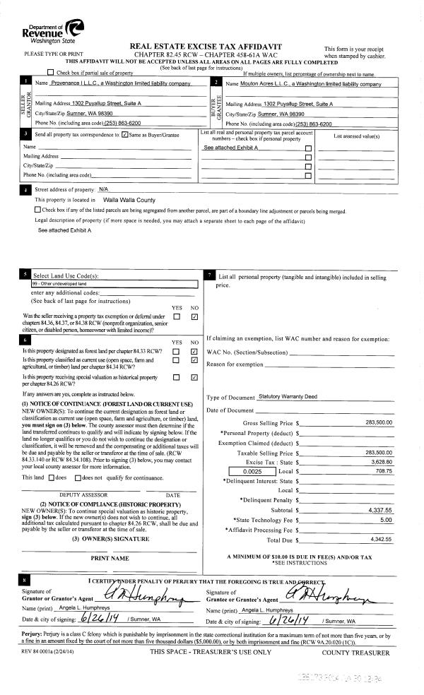 | 1 | 06/30/2014 | SWD | STATUTORY WARRANTY DEED | PROVENANCE I LLC | MOUTON ACRES LLC | 35-PARCELS | | $283,500.00 | 126173 | 2014-04527 |