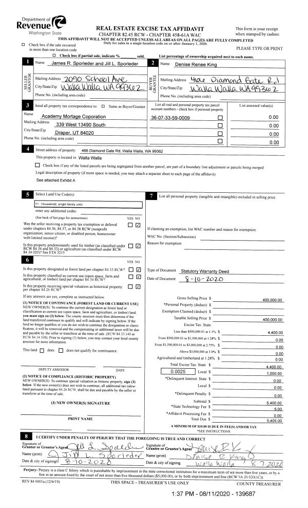 | 1 | 01/13/2021 | SWD | STATUTORY WARRANTY DEED | BOYLE WILLIAM J & GAIL P | GREGOIRE NORRIS SCOTT & LUCILLE MARIE | | | $465,000.00 | 140724 | 2021-00509 |