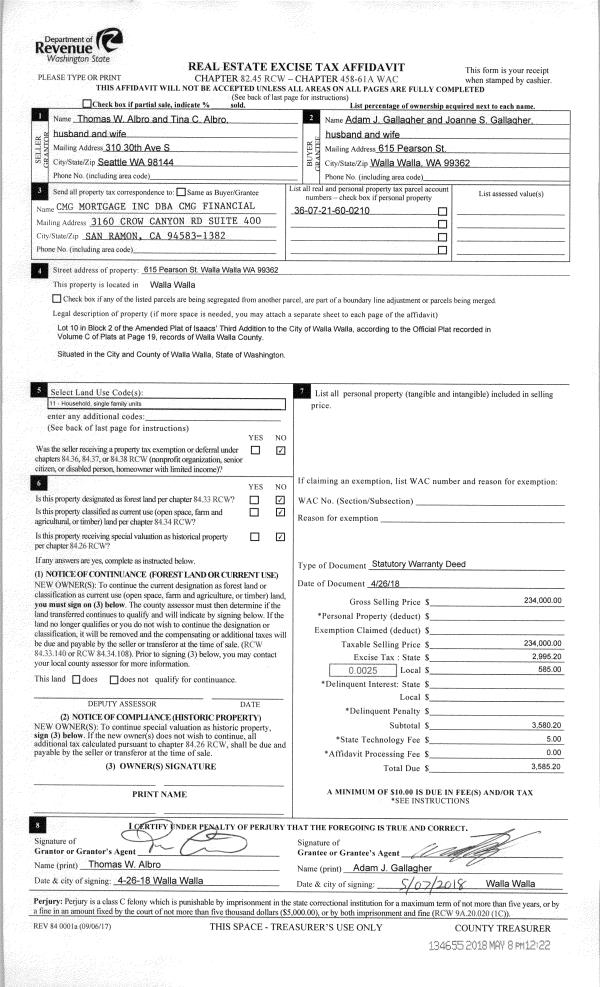 | 2 | 05/08/2018 | SWD | STATUTORY WARRANTY DEED | ALBRO THOMAS W & TINA C | GALLAGHER ADAM J & JOANNE S | | | $234,000.00 | 134655 | 2018-03582 |